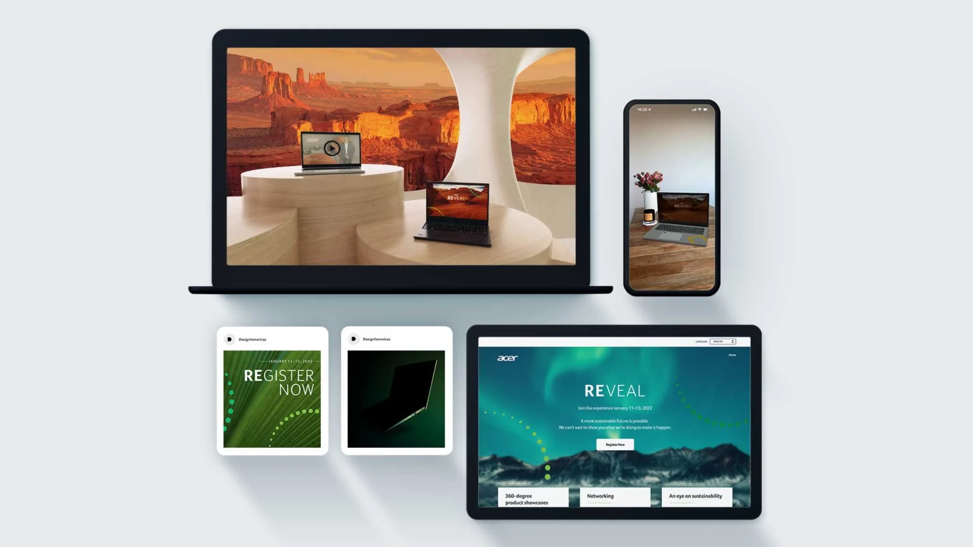 The creative theme “Reveal” was developed as a conceptual and emotional foundation: a declaration of Acer’s innovations in sustainable product development and a call to collective action. It acknowledged that the journey toward sustainability is ongoing—and invited customers, partners, and the tech world to join Acer in progress, not perfection.